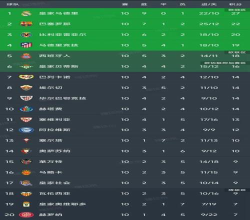 北京时间10月28日,随着马竞2-0战胜皇家贝蒂斯,西甲第10轮结束了所有比赛,我们一起看看最新积分榜变动!