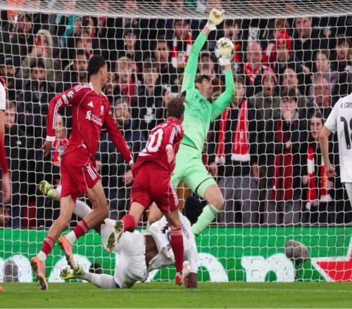 上半场,因楚阿梅尼一次颇具争议的手球判罚,利物浦球迷对未获点球感到愤愤不平。